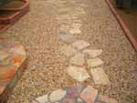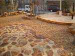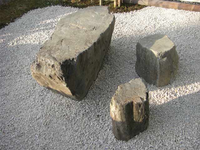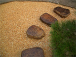 | ●さび砂利(白)に自然石のガーデンテーブル | ●さび砂利(赤)に京都産(本鞍馬)の飛石 |